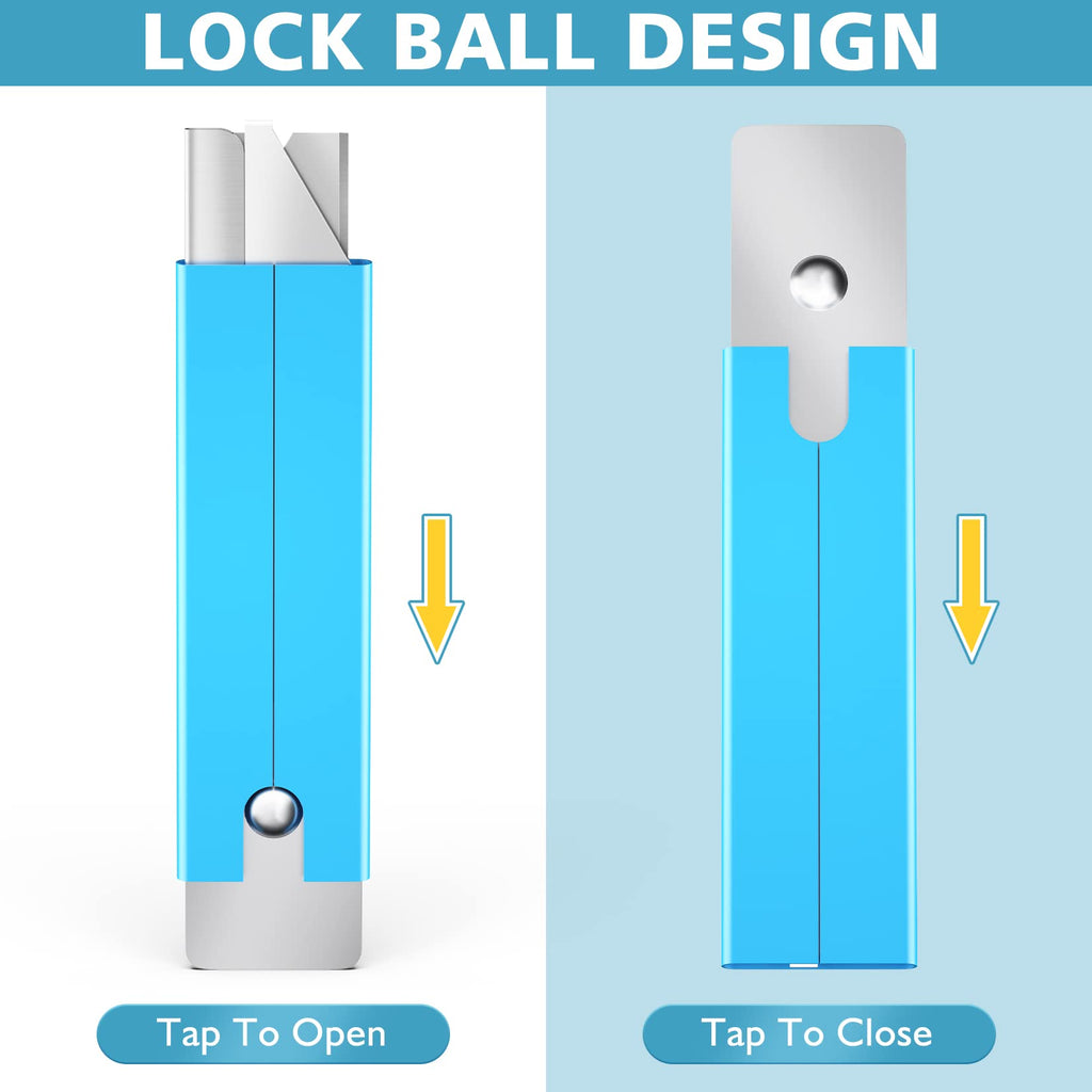 - Fast-paced Operation: Tap to open, tap to close, and the blade slides completely into the outer mental sheath. And it’s a razor blade utility knife that can be used as a razor scraper for scraping off stickers or paint residue on windows, tiles, boxes, concrete, and walls.